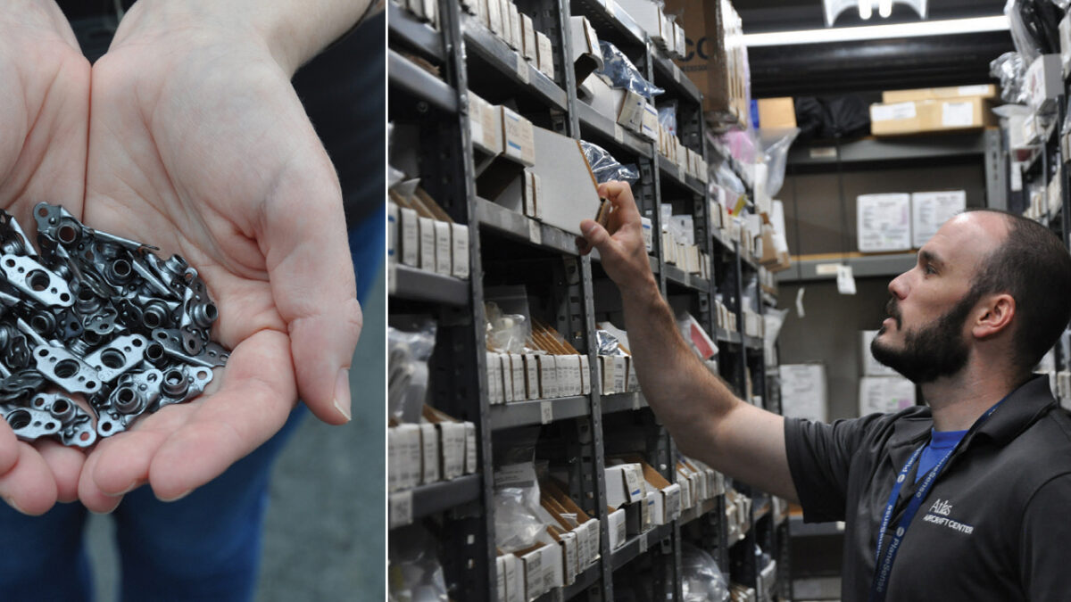 Tucked just behind the Atlas Aircraft Center, Inc. hangar at the PlaneSense, Inc. headquarters in Portsmouth, NH is a department few are aware of, but one whose role is critical to the successful maintenance of the fleet. Welcome to the Parts Department, where the team manages more than 194,000 aircraft parts of all sizes, one of the largest inventories of Pilatus aircraft supplies in the United States.